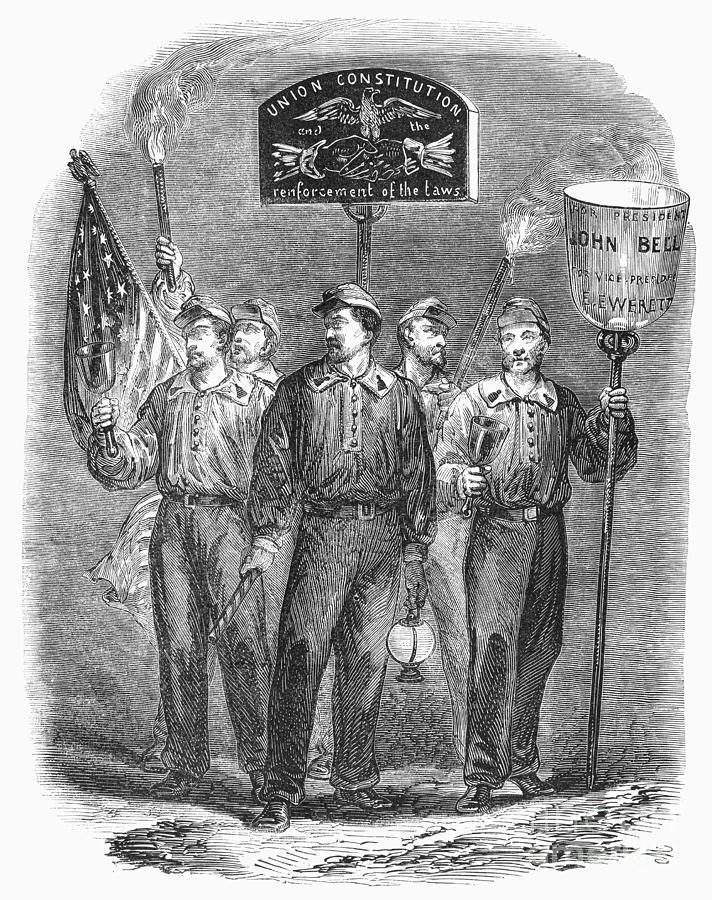 Lincoln faced a battle in the free states against fellow Illinoisan Stephen Douglas (“the little Giant” on account of his height and girth, as well as his political prominence) who ran well against him in the Midwest, but in the end won only one state (Missouri) outright. Meanwhile, in the slave states, there was an almost entirely separate election fought between another Democrat, John C. Breckinridge (whose supporters had “bolted” from the Democratic convention in protest at the nomination of Douglas) and an elderly Whig, John Bell, running under the banner of the Constitutional Union party. The latter’s solution to the crisis over slavery was to promise to say nothing and do nothing. This was a surprisingly strong pitch in some parts of the country: Bell won Virginia and a number of other upper South and Border states.
