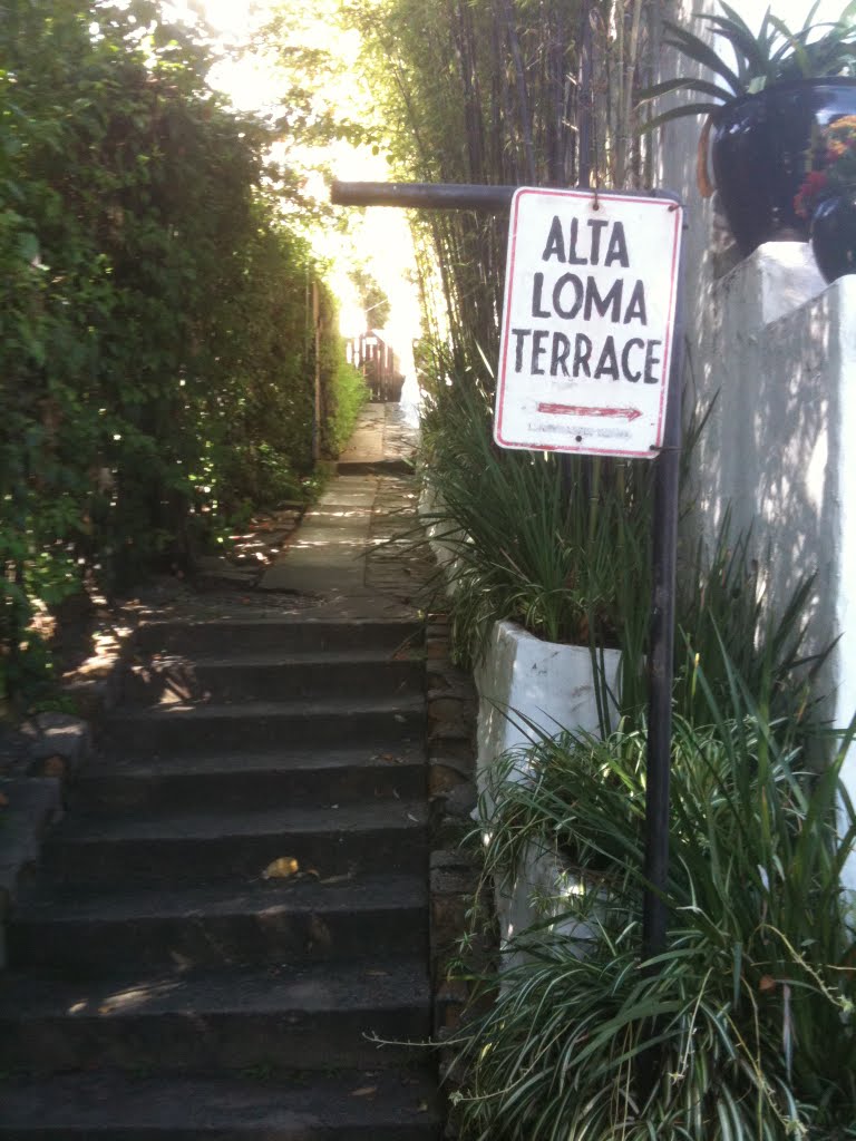 When I went there, I thought that Alta Loma terrace, in Hollywood, CA, was a pretty, rather enviable place to live. Unusually for any residential street in America the houses are arranged on either side of a footpath instead of a road (although reassuringly there’s vehicle access to the rear of the houses) and the path rises steeply up a wooded hillside. Behind thick foliage you glimpse houses in brazenly varied architectural styles, sprinklers, barbeques and well-tended gardens. And between the houses are stunning views over suburban LA and to the hills beyond.